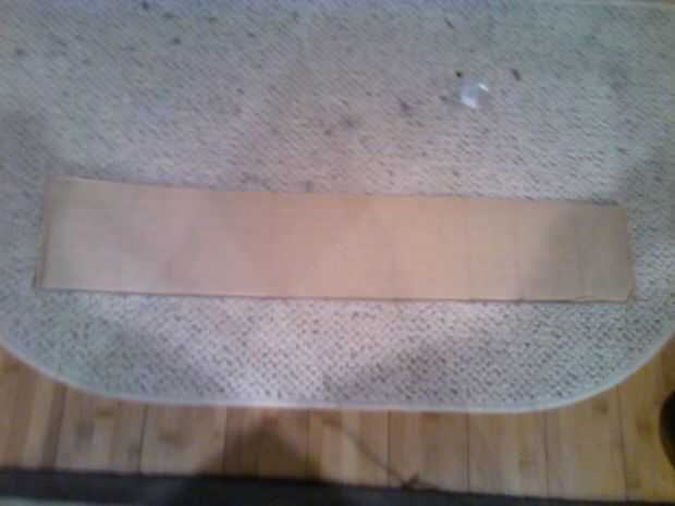 2. use el pencil(T4) y el ruler(T3) para dibujar un rectángulo grueso de la longitud de la cintura le. El rectángulo debe ser de 4 pulgadas de ancho y tan largos como su medida de su cintura. Esta pieza será la correa de la cintura.