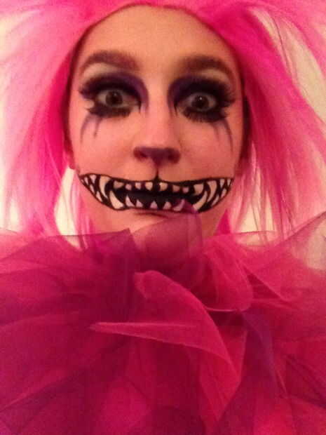 Con la funda de gel negro, rellena el espacio entre los dientes. Cuando se llena de eso, dibujar una línea delgada alrededor de los dientes por los labios. En las esquinas, hacer un espiral angular y dos hoyuelos angulares. Para completar el look por sorteo una media luna pequeña debajo del labio inferior, que le hacen mirada como usted está sonriendo!