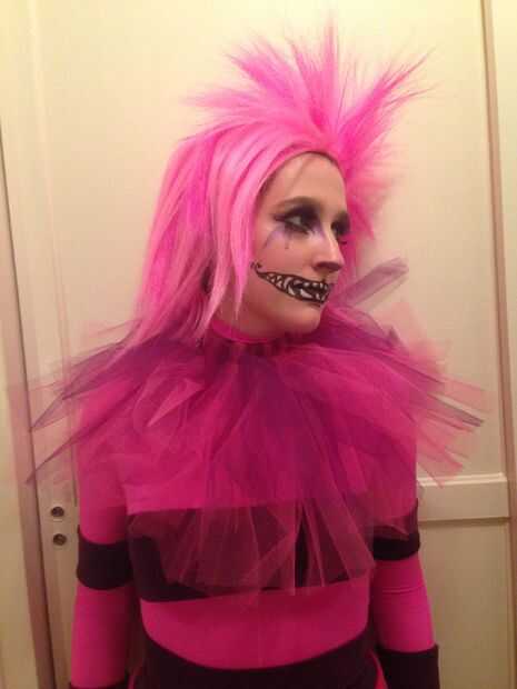 Si usted puede encontrar una peluca color rosa y púrpura previamente resaltada, más poder para usted! Yo no pude, así que compró un color de rosa uno y destacó con el tinte de pelo temporal púrpura. Tomar trozos de cabello de varias capas y rociar con el tinte púrpura. Cepillar hacia fuera cuando se haya secado.