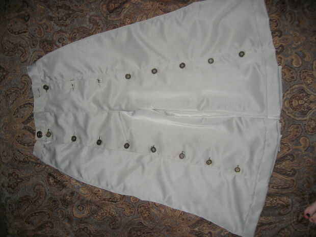 Me llevó para siempre a encontrar una camisa decente. Al principio quería usar otro patrón de Folkwear pero ya había pasado tanto dinero como quería pasar, y pensé que podía encontrar algo barato en una tienda de segunda mano. Me tomó cerca de cinco tiendas de segunda mano, pero finalmente encontré una chaqueta tamaño infantil por un dólar cincuenta en un ejército de salvación. Me vestí con una bufanda (todavía no he decidido cual bufanda utilizar todavía). Y hemos terminado!