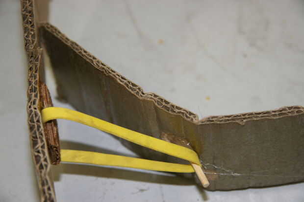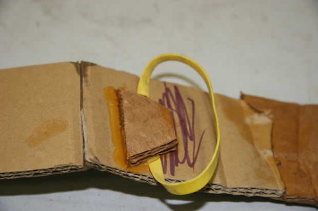 el próximo paso para instalar la banda de goma. sólo ponerlo abajo poner mucho pegamento en y alrededor de ella y pega cartulina en la parte superior. Esto es en el cuadro 4
