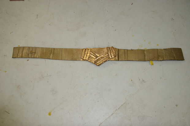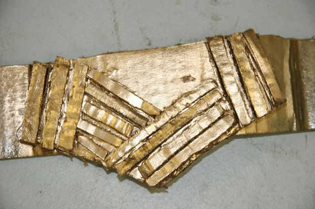 luego cortar la forma de la hebilla del cinturón. la forma es en la figura 2. luego cortar tiras finas de cartón hacia fuera y pegarlos en cuadro 3.