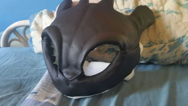 La máscara (el traje entero) no debe usar por períodos prolongados. Poner en una foto o dos y quitarlo. No muchos perros toleran por más tiempo de todos modos. ;)