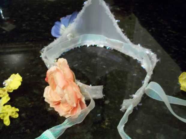 Con la navaja Xacto, corte media pulgada hendiduras a la cinta a través del hilo de rosca. Luego decorar con las flores de seda.