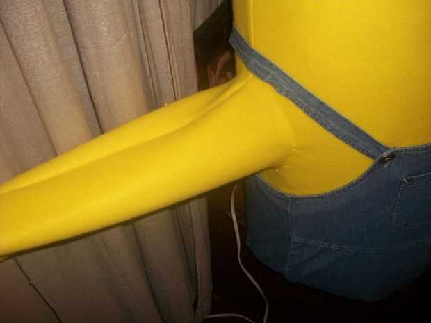 Las armas son realmente opcionales. Su hijo lleva una camisa amarilla sería más fácil. Yo no soy un gran a coser así que corté una tira un poco grande que mi brazo de hijos (longitud y anchura) y entonces mano lo cosió en. Si haces esto pero la costura del brazo en la parte inferior :( Usted puede decir en mi foto está en el top jajaja
