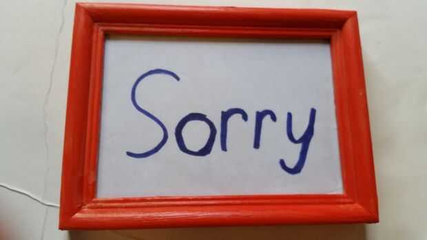 Cortar su papel para encajarlo en el marco y para escribir lo siento en el papel. Ahora pegar el papel en el marco.