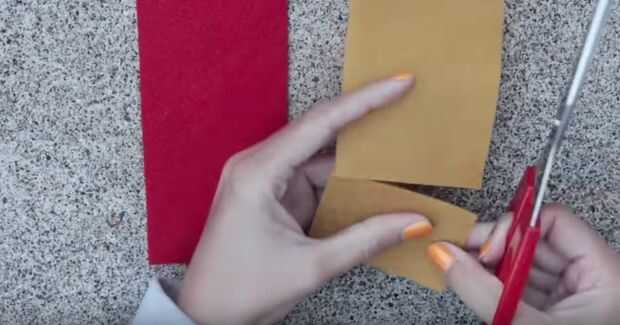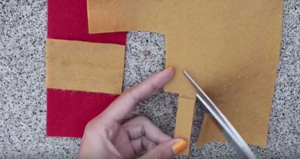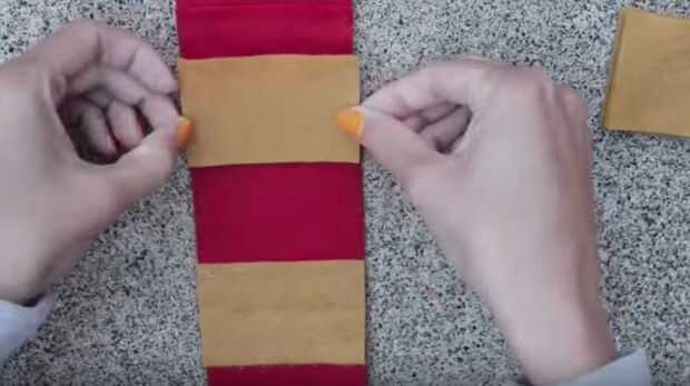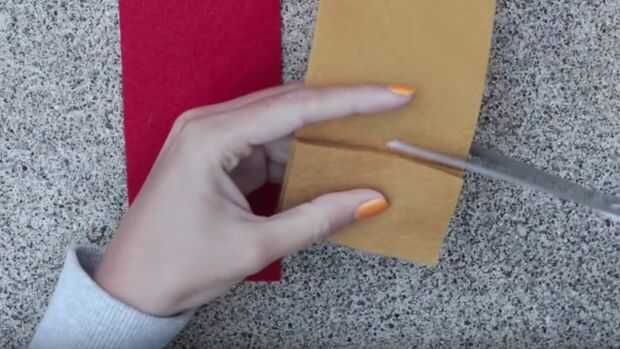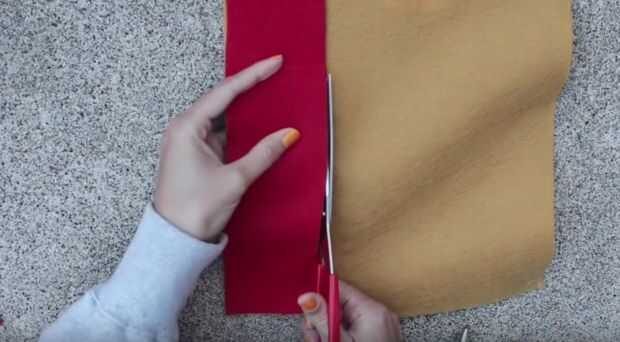 Usar la bufanda como guía para cortar un trozo de fieltro de oro.