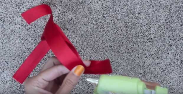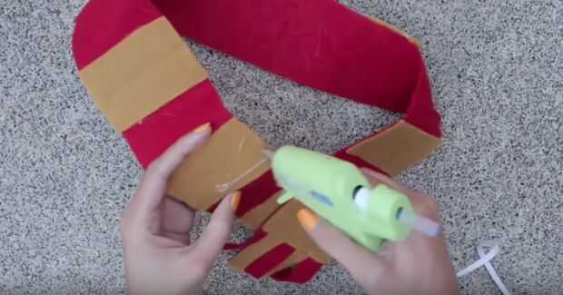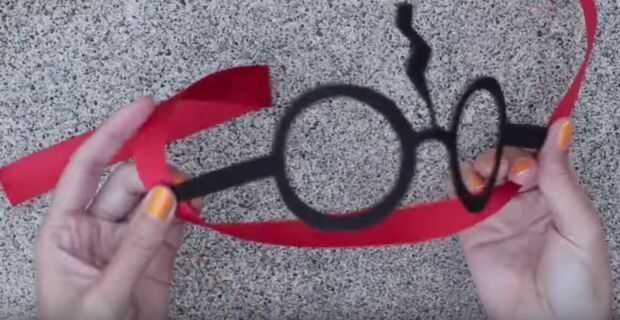 Poner esto en el perro, atar como un arco, luego levante los vidrios. Tome nota de donde golpearon los lados de las gafas en la cinta. Marque estos lugares, tomar la cinta el perro y las gafas a estos lugares en la cinta del pegamento.