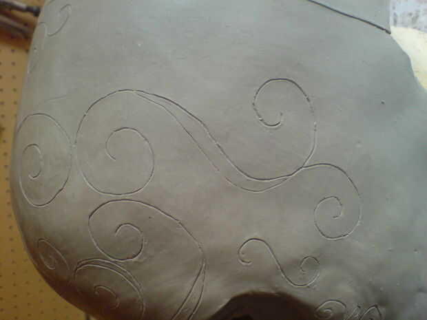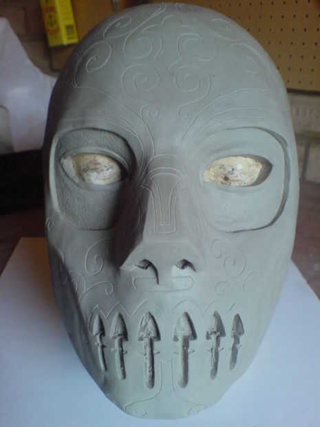 Comencé el proceso de esculpir la mascarilla de arcilla, usando una cabeza de yeso del molde como base.