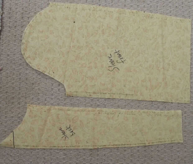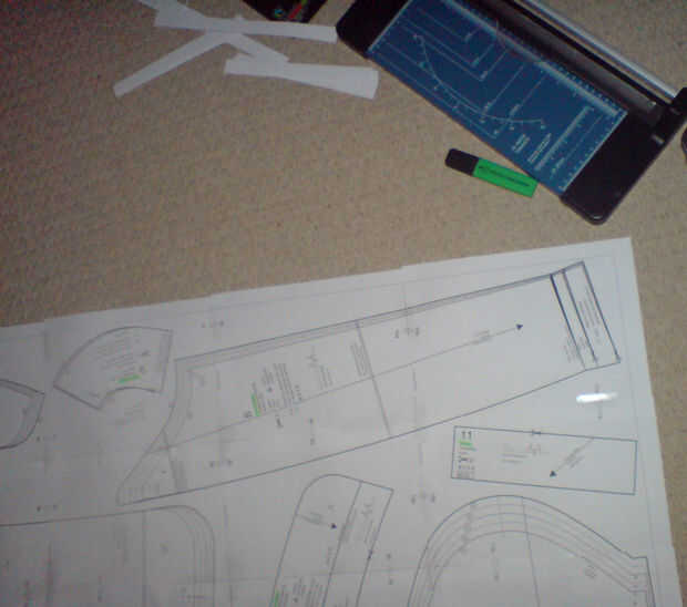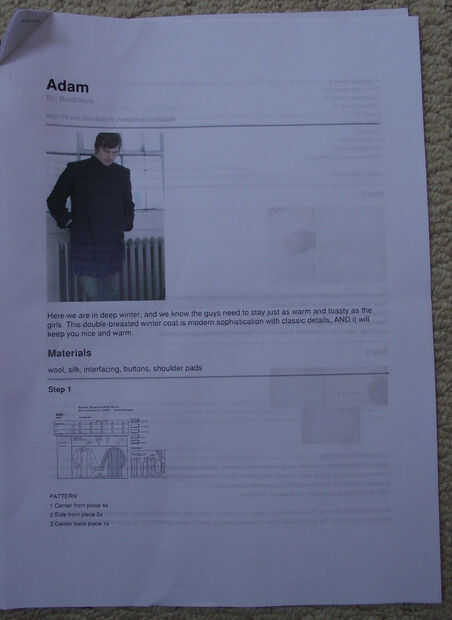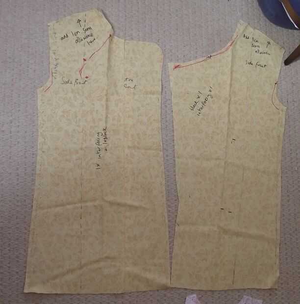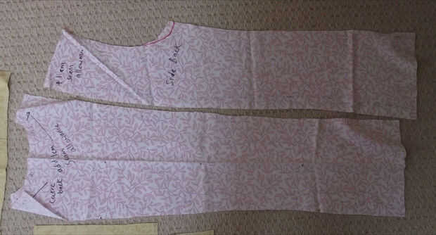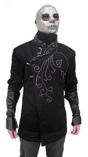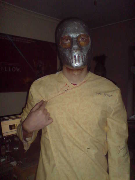 La túnica comenzó como un patrón relativamente sencillo abrigo cruzado. Esto fue adaptado con la ayuda de bocetos, rotuladores y numerosos alfileres. Finalmente una túnica maqueta fue hecha con viejos retazos de tela, para asegurarse de que cabe, y que las alteraciones. Esta fue una etapa divertida, adjunta a este paso es una foto de esta maqueta siendo usado con la máscara, un hippy alegre agradable mortífago!