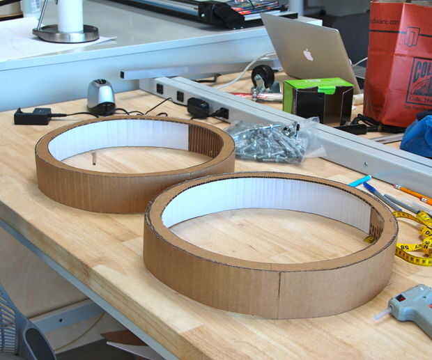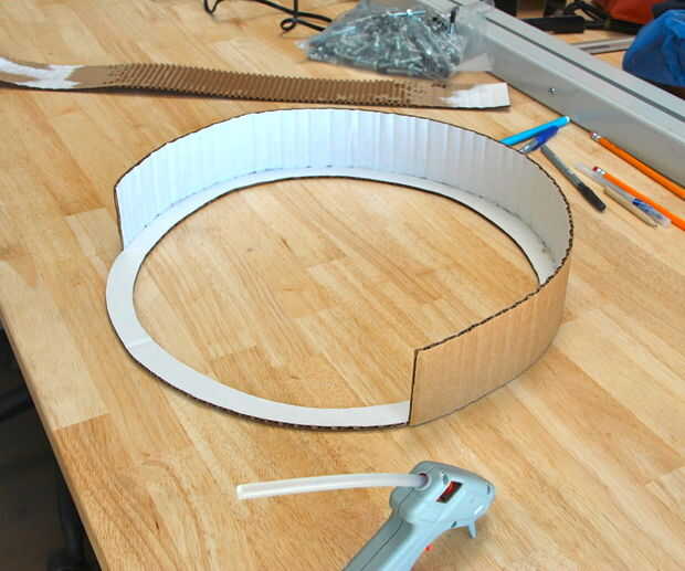 corté tiras de cartón 3 pulgadas de ancho para esto. Cortarlos para que te curva muy bien - es decir, a través de la veta, no con él!