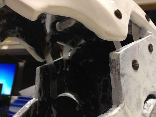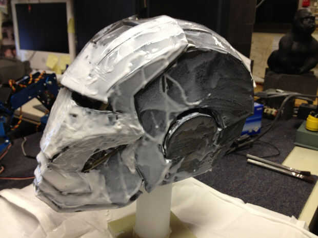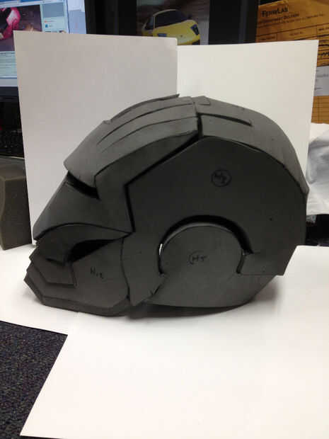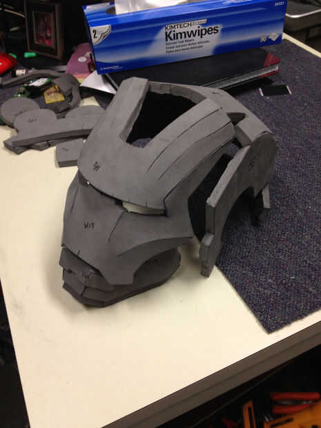 Decidí crear este traje de espuma. Era más fácil trabajar con y llevó menos tiempo que una estructura de fibra de vidrio anterior. He utilizado pegamento caliente para adherir las piezas, que también fue agradable y fácil.