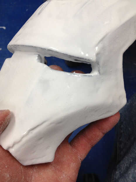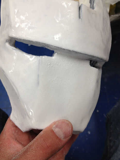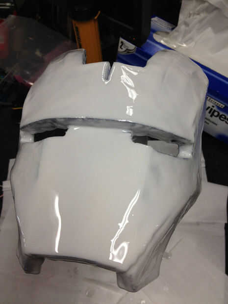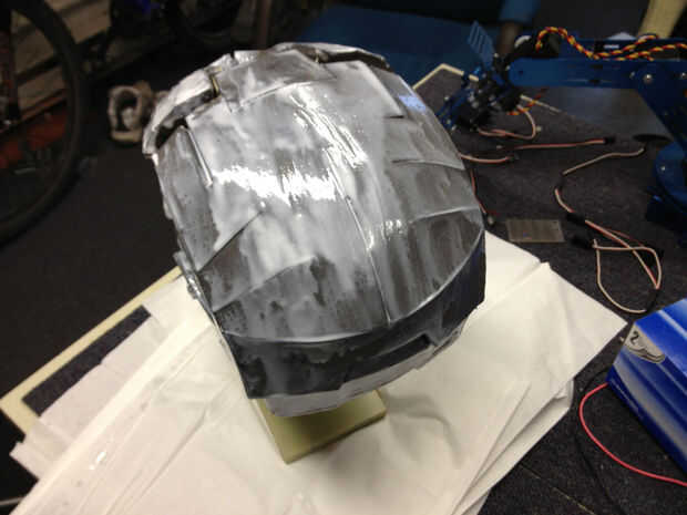 A continuación, he usado dos parte del molde llamado "smooth en D 65" y pintado en el exterior del casco para darle una apariencia suave y templada. También le dio más fuerza. Lo malo fue que pintura izquierda mucho trabajo de lijado, y luego tuve que aplicar capas de 8-10 por parte, tan sólo para conseguir un buen espesor que quería. No hace falta decirlo, era muy desperdiciador de tiempo, pero vale la pena al final.