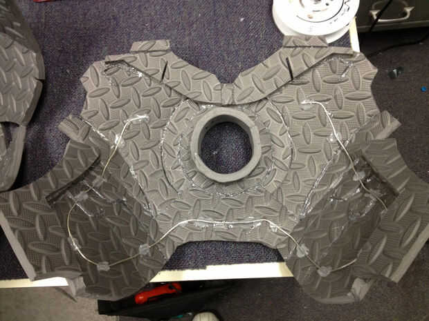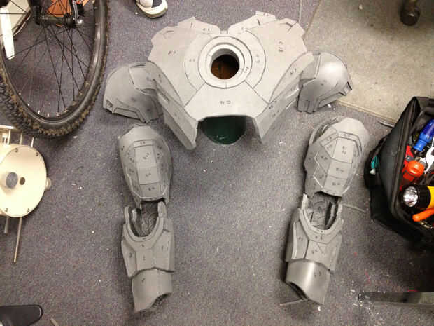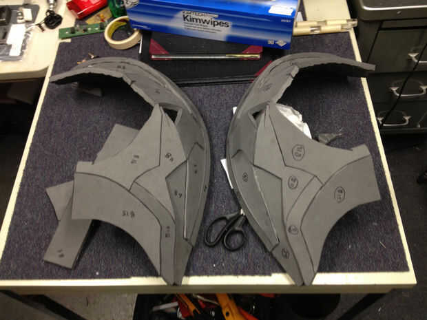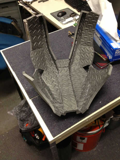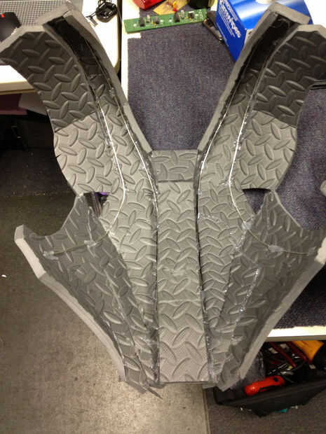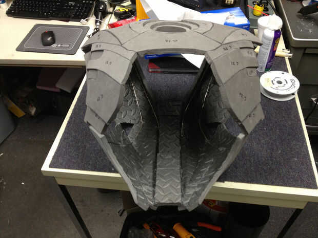 Una vez que se miden todas las piezas y corte, las partes del cuerpo Haz montado uno, por uno. Para el pecho y parte posterior, reforzado la estructura con alambre grueso que era fácil de doblar y formar en el interior de la espuma y conservan su forma y le dio más de estructura.