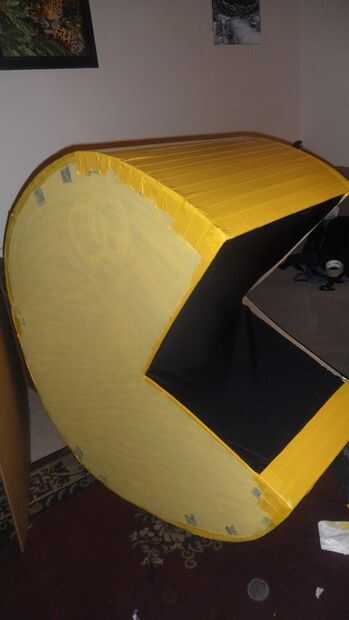 hizo un hombre de pac móvil de papel para mi sobrina de bebé y sus padres el invierno pasado. Se trata de cómo.El único costo para esto es para las cinco hojas de papel de colores. Cerca de $2.Mirando con cómo resultó (perdón por la calidad de imagen