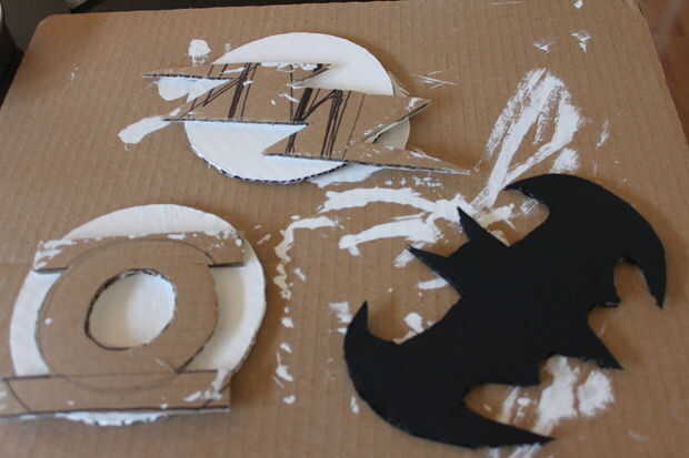 También se puede ver que cubrí las piezas "amarillas" con cinta adhesiva. Acabé de pintar las piezas amarillo de las caras rociando amarillo en una caja de plástico y luego utiliza un pincel. Era bastante decente. Otro detalle es que yo no iba a comprar pintura marrón para el pelo de linterna verde, por lo que acabo de comprar unas tempera marrón en el almacén del dólar. Hecho.