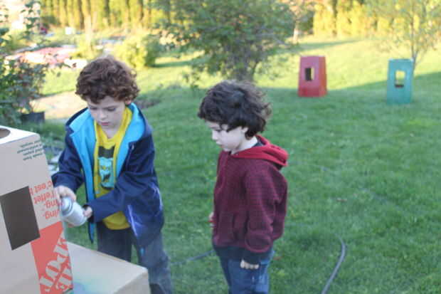 Compré algunos pintura en aerosol para empezar a lo grande. Los niños saltaban a la oportunidad de ayudar con esta parte.