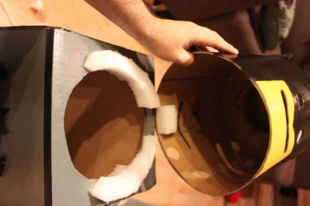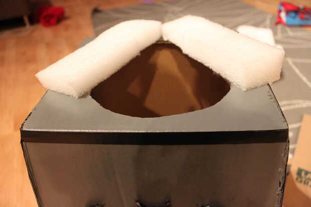 Vamos a empezar con el tema de casco primero. No quería asfixiarse cabezas llenándolos de espuma como el instructable. Funcionó bien para adultos, pero no los niños. Me tomó tres intentos para hacerlo bien. Yo sólo pegamento-asesinado a algunas piezas de espuma que tenía puesta alrededor de (estos eran de un ordenador que había comprado un tiempo atrás) y luego de la izquierda sobre las piezas. Puedes ver cómo bloqueado en la cabeza para que no se mueva.