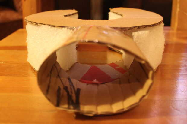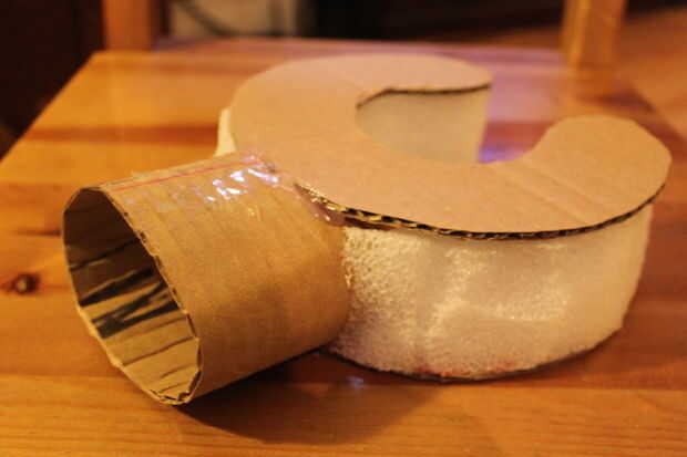 Cortar las manos de cartón y utilizado otra vez que la espuma chutando alrededor en casa para "sándwich" con el corte outs. La primera mano, graba la mierda fuera de él, porque me acordé del paso anterior, que espuma y pintura en aerosol no gustan en absoluto. Así para que la mano parezca impresionante, he pensado grabar molaría. Entonces mi esposa abrió la boca grande y me dijo que el papel maché se. Por supuesto esto era infinitamente mejor que la cinta. Así lo hice. Luego pintado a spray. Y resultaron impresionantes. Pero también mucho trabajo.