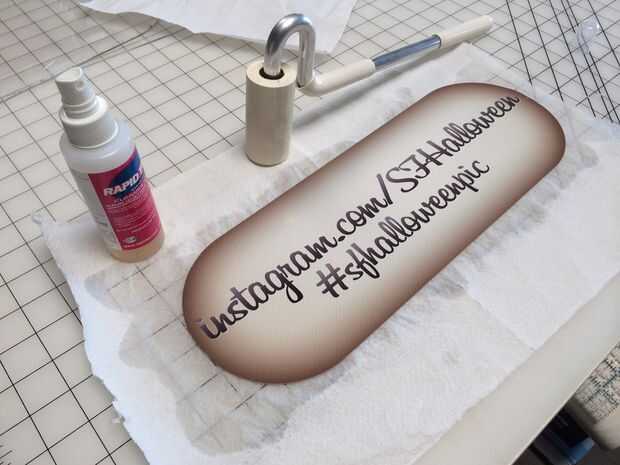 Adjuntar las imágenes impresas y cortadas a sus forros. Si el tuyo tiene un forro adhesivo, pulverizar el adhesivo y la superficie que está pegando a con una solución de aplicación; Esto evitará que el adhesivo sosteniendo hasta que usted la solución hacia fuera de debajo de la etiqueta engomada de la escobilla de goma.
