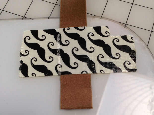 Porque es simplemente cinta adhesiva, estaba un poco preocupada que la correa puede simplemente escurrir desde debajo de la cinta. Para arreglar eso, dobla la tira sobre sí mismo y asegura con cintas adicionales así.