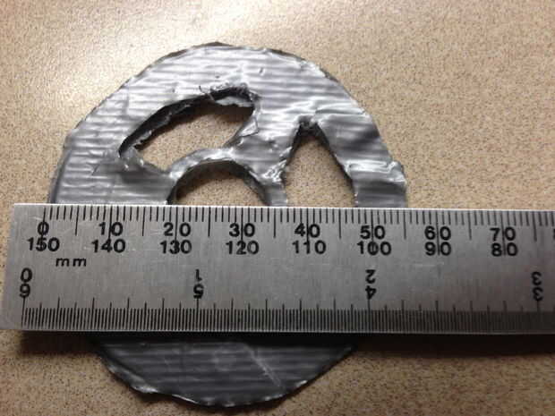 6. utilizar la imagen del aro interior para hacer uno de un CD antiguo. Puede globo ocular las dimensiones en esta parte como encaja dentro del modelo. Cubrir el anillo en cinta adhesiva y cortar todos los espacios vacíos. En el diseño con el marcador permanente y luego pegamento el anillo hasta la base.
