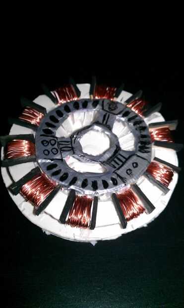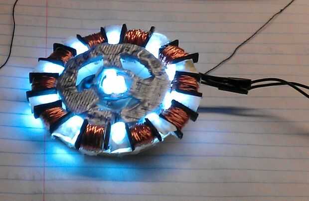 5. envuelva los cuadros de cartón pluma en cable de cobre desnudo. Colocar los rectángulos de madera negros a cada lado, como se muestra en la imagen. Esto hace que cada pieza de electroimán. Hacer 10 de estas y caliente pegamento en la parte superior la resistencia. Ligeramente los LEDs de la arena para hacerlos a la difusa luz mejor (esto aumenta su brillo aparente). Piezas de pegamento caliente luego de papel encima de los LEDs. Usar más pegamento en el papel para estabilizar las piezas. Compruebe que se enciende correctamente.