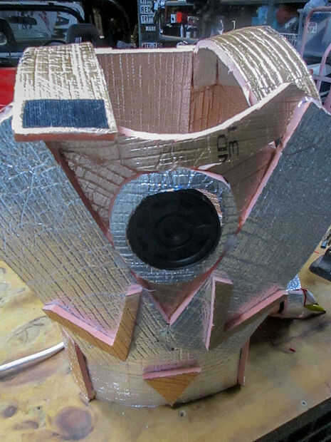 Mi hijo trabaja actualmente para agregar luces en el traje. Una vez más será celebrada en todo el lugar con el adhesivo caliente. También es un pedazo de pecho de centro de impresión 3D.