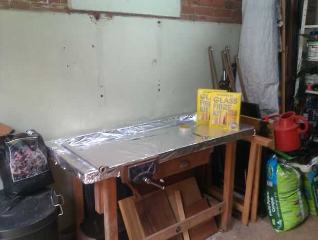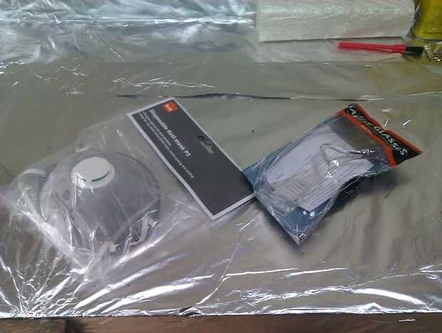 Prepararse para comenzar con un área de trabajo que tiene poco de polvo y un montón de ventilación. exterior está muy bien mientras su no llueve. preparar la mesa o Banco de trabajo por capas con papel de aluminio utilizando la cinta de cello para mantenerlo. hacer esto a unos cuantos tableros también así que usted puede poner las cosas a un lado para secar spray etc. cada uno con una buena dosis de WD40 para detener cualquier resina se adhiera a la hoja.