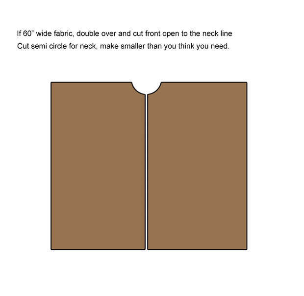 Si utiliza a tela ancho 60 pulgadas, corte una abertura por la parte delantera de la túnica del medio frente al cuello. Podría ser más fácil de hacer esto después de cortar las mangas, es usted.
