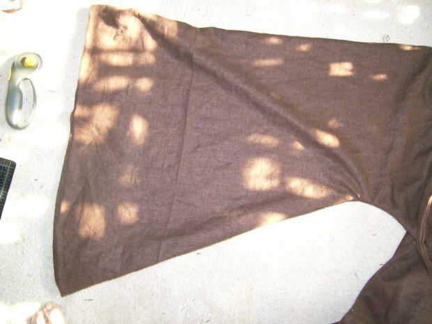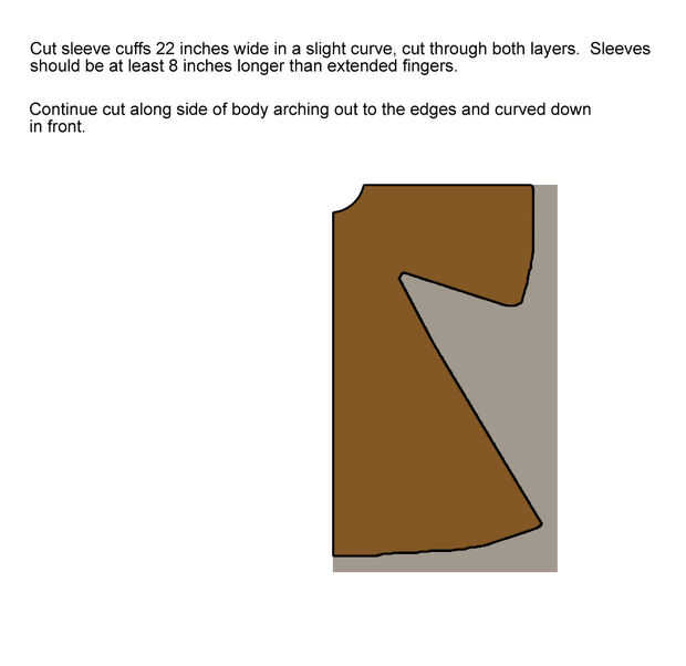 Cortar el borde de la manga por lo menos 22 pulgadas de ancho - son túnicas jedi y debe tener mangas super anchas. Más amplio que nunca pensarías que podría desear. Usted puede siempre cortarlos más pequeños si deseo, pero confía en mí, mangas gigantes ven impresionantes.