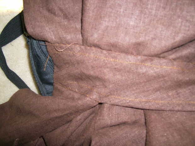tomé un trozo rectangular de tela, dobladillado los cuatro lados, luego ciego dobladillo cosidos tres lados a lo largo de la parte superior del cuello y las vistas delanteras, dejando la parte inferior borde flotante. Dejando flotante guardado el cuello hacia a hacer raro reúne debajo del cuello a lo largo de la espalda, pero yo puedo han hecho demasiado. Si hacen el tuyo más estrecho, dobladillo ciego a lo largo de los cuatro lados podría tener sentido para usted.