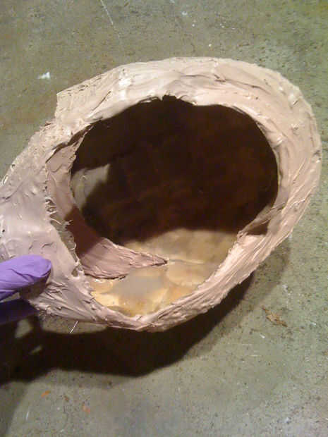 Primero añadí las capas de fibra de vidrio y resina en el interior del casco. Entonces después de que estaba satisfecho con todos los vacíos que llena, yo dejarla secar durante unos días. A continuación se separó mezcla de bondo en el exterior para hacer la superficie lisa y transparente.