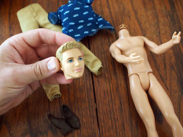 A estar modificando esta muñeca para combinar con ropa de Tonto y para permitir que las piernas al sentarse en una silla sobre el torso del perro. Comience quitando toda la ropa de la muñeca y grin como pop la cabeza.