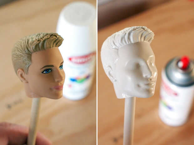 El carácter en la película tiene su cara pintada de blanco. Con la muñeca curar colocado sobre un lápiz se aplica unas capas finas de pintura blanca mate. Se aplicaron nuevas capas hasta pintura uniforme completa se logró cobertura.
