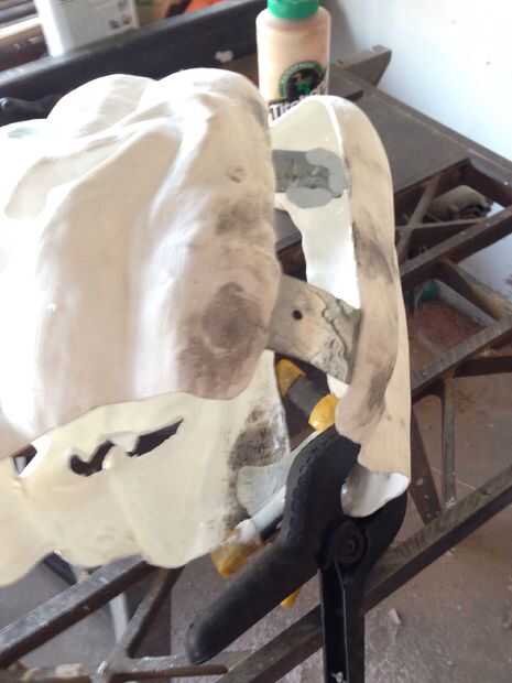 Luego cubre los huecos con una capa delgada de espuma del arte, de refuerzo dentro de la máscara con más espuma y pegamento caliente. Después de la pintura era difícil darse cuenta de que había cometido el error!
