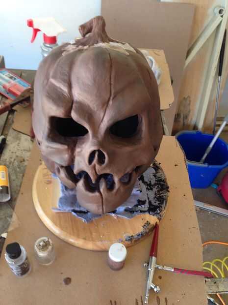 Puede utilizar muchos métodos para pintar, para mí, los resultados mejores y más realistas, me gusta el pincel de aire. Usted puede mezclar los colores sobre la marcha, cambiar la configuración a voluntad. Comencé estableciendo unas capas de imprimación gris para plástico. Entonces usé unos Costa del negro plano. Aquí pasé de pintura de aerosol a acrílicos. He mezclado marrón pintura acrílica con agua y poner unos abrigos en la máscara, seguida por cerca de 5 capas de color naranja brillante. Yo entonces ligeramente lijada y luego empezar añadiendo marrón claro para acentuar las áreas más oscuras y añadir profundidad. Yo seguí añadiendo capas de los colores más oscuros hasta que era por favor, y añadido algunos más naranja para resaltar los puntos más altos. Para terminar la máscara, usé unas pocas capas de semi mate para sellar mi trabajo de pintura.