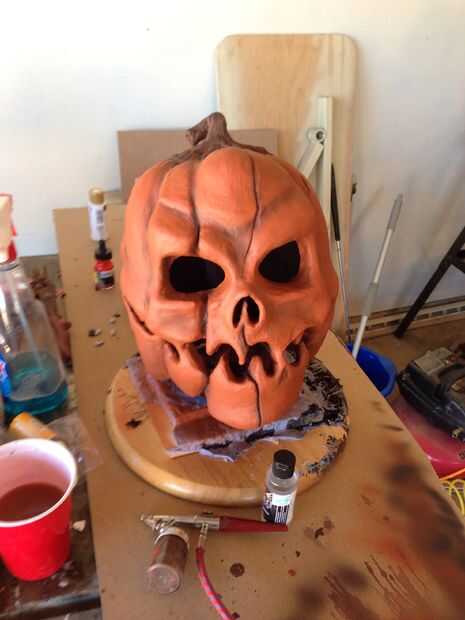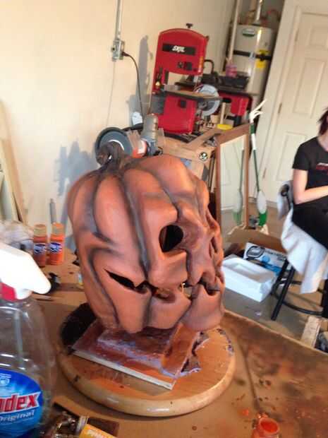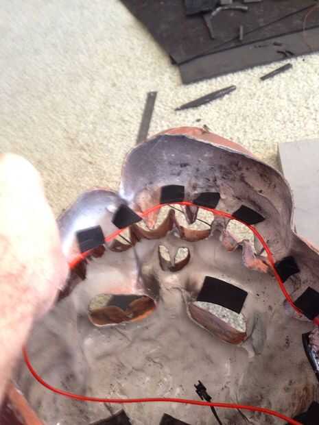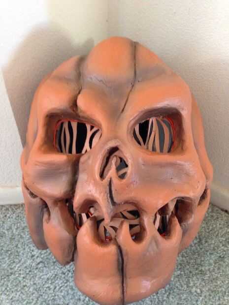 También he añadido unos 3 pies de alambre para dar mi máscara un efecto brillante en los ojos y la boca! para lograr esto me caliente pegado en lugar alrededor de los orificios. También he añadido algunos cortan y pintaron de espuma de arte para los ojos y la boca para darle un aspecto como tripas de calabaza dentro. Antes el arte de la pintura de aerosol espuma usted debe cubrir con Plastadip primero!