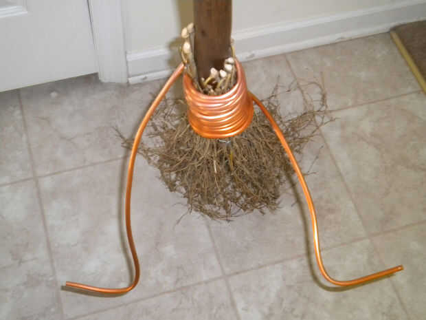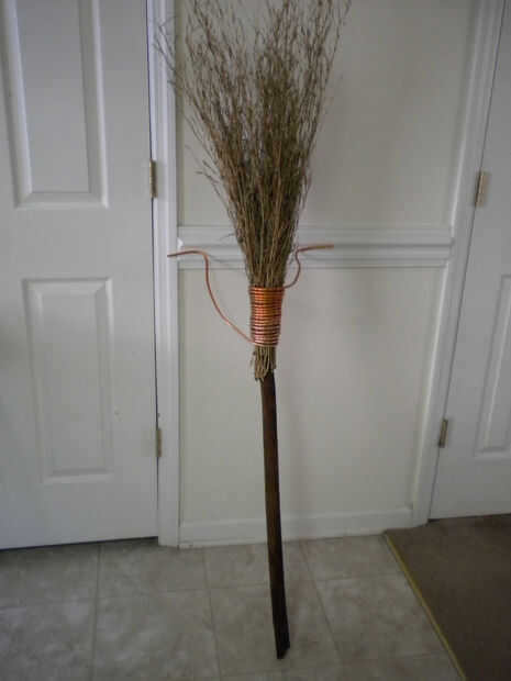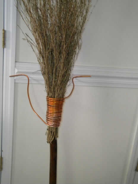 La escoba - algo que hasta el final ha sido bastante sencillo se convirtió en un dolor en la parte trasera cuando tuve que envolver con la bobina del refrigerador. La bobina parecida lo suficientemente flexible en primer lugar, pero resulta que realmente no le gusta doblar tan fuertemente. Para conseguirlo para permanecer en el lugar en vez de él sí mismo deslizando hasta la manija con cada abrigo, tuve que "cincha" un poco más cerca de la mitad y luego Envuelva por separado abajo de ese lugar y desde ese lugar. Comencé haciendo el reposapiés más largo primero y entonces comenzó a envolver la bobina. Cuando la bobina no estaba cooperando, tuve que aflojar para arriba y encontrar un lugar pudiera ceñir a ambos lados de (algunos de los tallos de la cerda tenían nudos que sujetan la bobina en su sitio para que no deslice hacia arriba la manija de la escoba), entonces pude apretar la bobina hacia arriba y terminar envolviéndola, luego hacer el reposapiés más pequeño y finalmente cortar la parte sobrante con un cortador de tubos pequeños. Eso me dio una rutina de ejercicios, y no recomiendo tratar de si existe el riesgo de la hernia (ya me casi di a uno). Si yo sabía de otra manera de hacerlo, y no el día antes de truco o trato, podría hacer de manera diferente. No tenía idea cuando empecé que sería tan difícil envolver y mantener en su lugar.