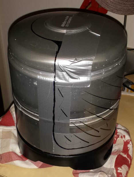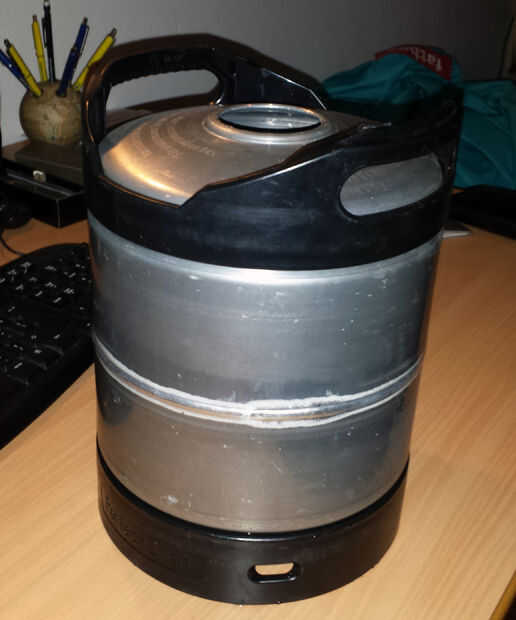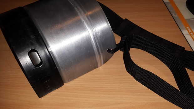 La hombrera está hecho usando la parte inferior del barril. La primera imagen muestra que parte de exactly(shaded part) y la imagen 4 muestra que la parte ya cortada. Después de aserrar el barril usando una sierra para metales y una dremel (para esquinas) todos los bordes son presentados y lijados para evitar que me corte. La parte de plástico del barril se corta por separado y pegada después de la presentación. En el extremo donde la manica comenzará los agujeros se perforan para fijarlo. Una correa alrededor del pecho asegura la hombrera, la correa es de una bolsa de viaje y se recorta en los agujeros hace en las esquinas, ver figura 1.