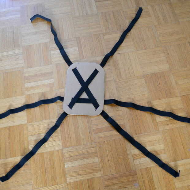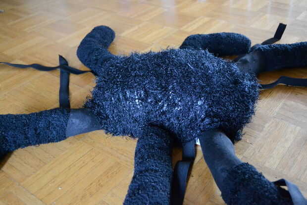 El cuerpo de la araña era simplemente una bolsa de basura negra (sólo la parte inferior solamente) que fue formado en forma oblonga con periódicos agrupados para arriba y cubierto con un pedazo de tela negra difusa.