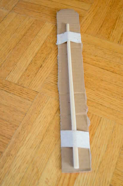 Las piernas a continuación fueron aseguradas en una cartulina dura base con cinta del palo de hockey y hockey-claro: la base de cartón fue la luz pero resistente; la cinta transparente no arruinaría los calcetines por si quiero reutilizar para otro proyecto; palo de hockey las cintas es elásticos y muy fuerte, lo suficientemente bueno como para unir todo!