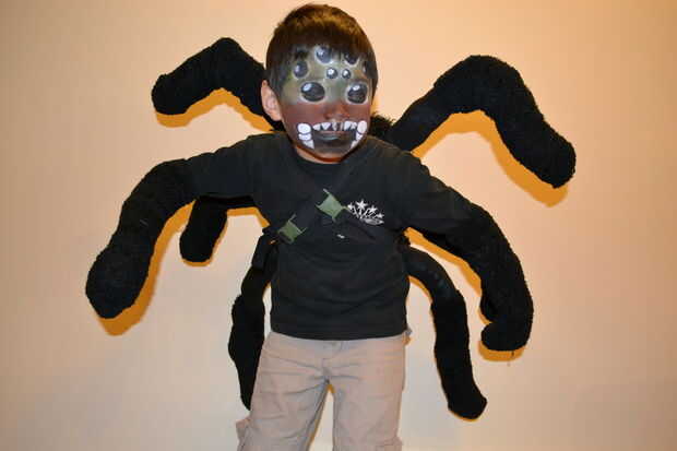 Estábamos muy contentos con los resultados y ni que decir, el traje fue un gran éxito en la escuela! La 'mochila patas' fue un ajuste perfecto sobre un largo negro camisa y chaqueta, el maquillaje fue dramático y gran teatro era realmente espeluznante mirando en la oscuridad de la noche de Halloween, y mi hijo estaba canalizando sus compañeros arácnidos con júbilo. Y no. Sin bolsa de papel para mí. ¿Pero bug a mi hijo un millón de veces - "dices que tu mamá lo hizo, derecho? derecho? ".