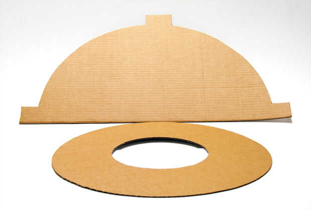 Para hacer el sombrero de la bruja, cortar un ala con forma de donut de la pieza de cartón, asegurando que el orificio central encaja perfectamente sobre su cabeza. Para el cono, cortar medio círculo ligeramente más grande que el donut y asegurarse de que hay cuadrados las lengüetas en los extremos y en el centro.