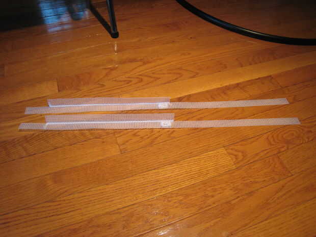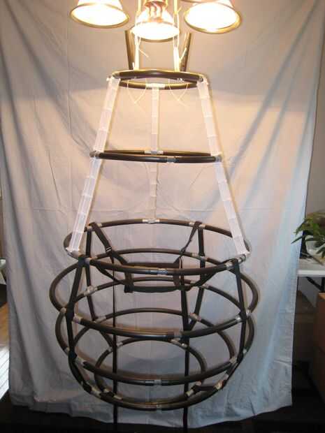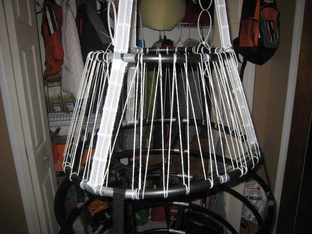 Hemos añadido la cadena entre los aros de medio hombro y la parte inferior en un esfuerzo por apoyar la guata y la tela. Me gustaría pensar de una manera diferente de hacer esto, pero funcionó. Sólo asegúrese de no poner demasiada tensión donde doblará el aros (que es lo que pienso eventualmente colapsar mi rayos de malla de plástico).