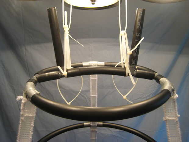 El aro superior tiene una estructura adicional para levantar a la tela y sujete las orejas así. Para hacer todo esto cabe tuve que cortar el tee-juntas un poco más cortas.