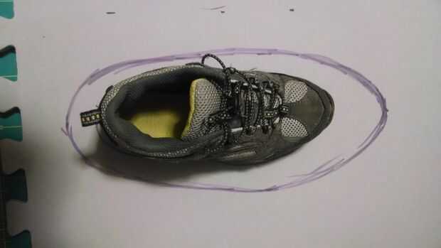 Tenemos muchos zapatos poner alrededor que están desgastados, pero aún así calza (niños). A continuación tenía baldosas de goma espuma gris tendido alrededor de otro proyecto. Dibujé un fondo del zapato en el azulejo. Entonces remonta el zapato dentro del primer trazo hacia la parte posterior del zapato. Luego córtelo hacia fuera con una nueva hoja de un cuchillo.