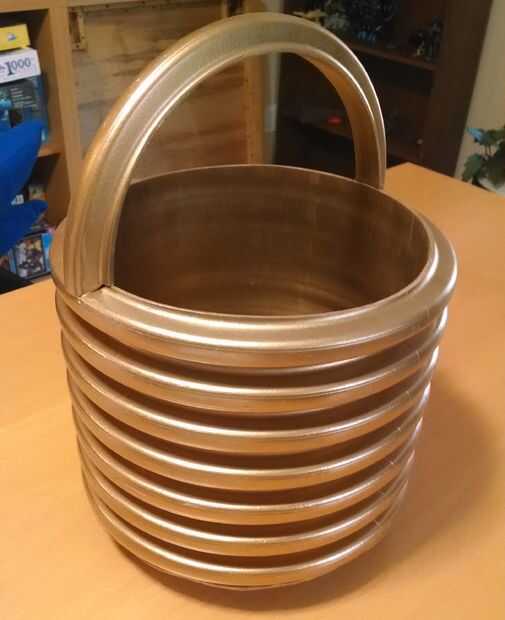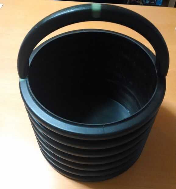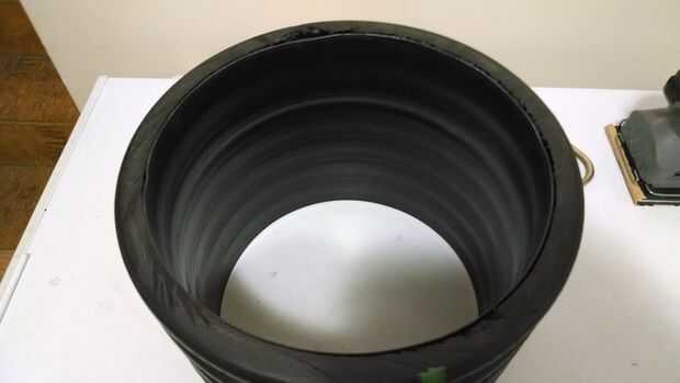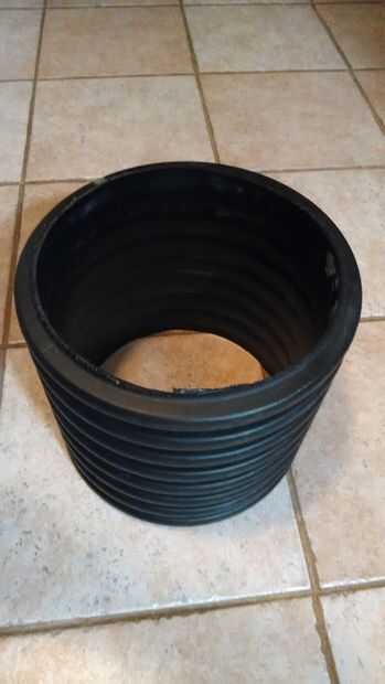 Mi hijo mayor tuvo una gran idea para su cubo de caramelo de hermanos más jóvenes. Debería verse como una pila de anillos. Este es una adición tardía, pensé en usar tubería de drenaje corrugado negro grande. Fui a un lugar local y me dieron un pequeño pedazo gratis! Era un tubo de 10" a 1' de largo. Yo probablemente podría han pasado de un diámetro más pequeño, pero eso es retrospectiva ahora.