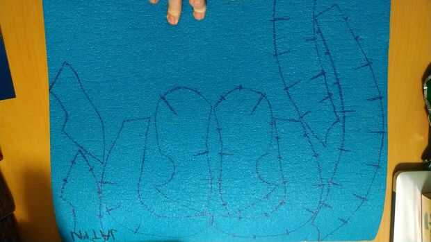 Había trazado estos directamente sobre la espuma azul, sin embargo, yo debo haber hecholo más grande, habría hecho una plantilla de papel ampliado primero. Luego he hojeado las plantillas, por lo que tendría una cabeza entera. También tener en cuenta el rol natural de la espuma azul. Si lo dejas le hará poner cosas juntas mucho más fácil.