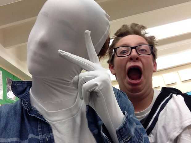 viven es un 80s épicamente cursi película de John Carpenter que me encanta! Aquí es lo que necesitas hacer de este simple pero atención agarrando el traje:-máscara del traje en blanco-máscara de esqueleto o demonio-caliente la pistola de goma y pegam